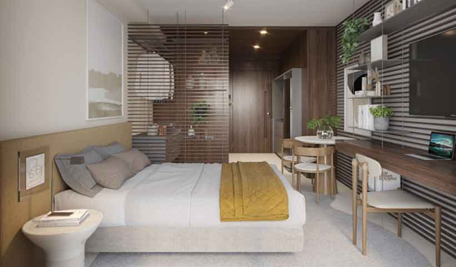 Studios de 28m² a 30m², com infraestrutura completa, design assinado e localização estratégica no eixo Berrini-Chucri Zaidan, região de alta demanda que apresenta as maiores taxas de ocupação de São Paulo.